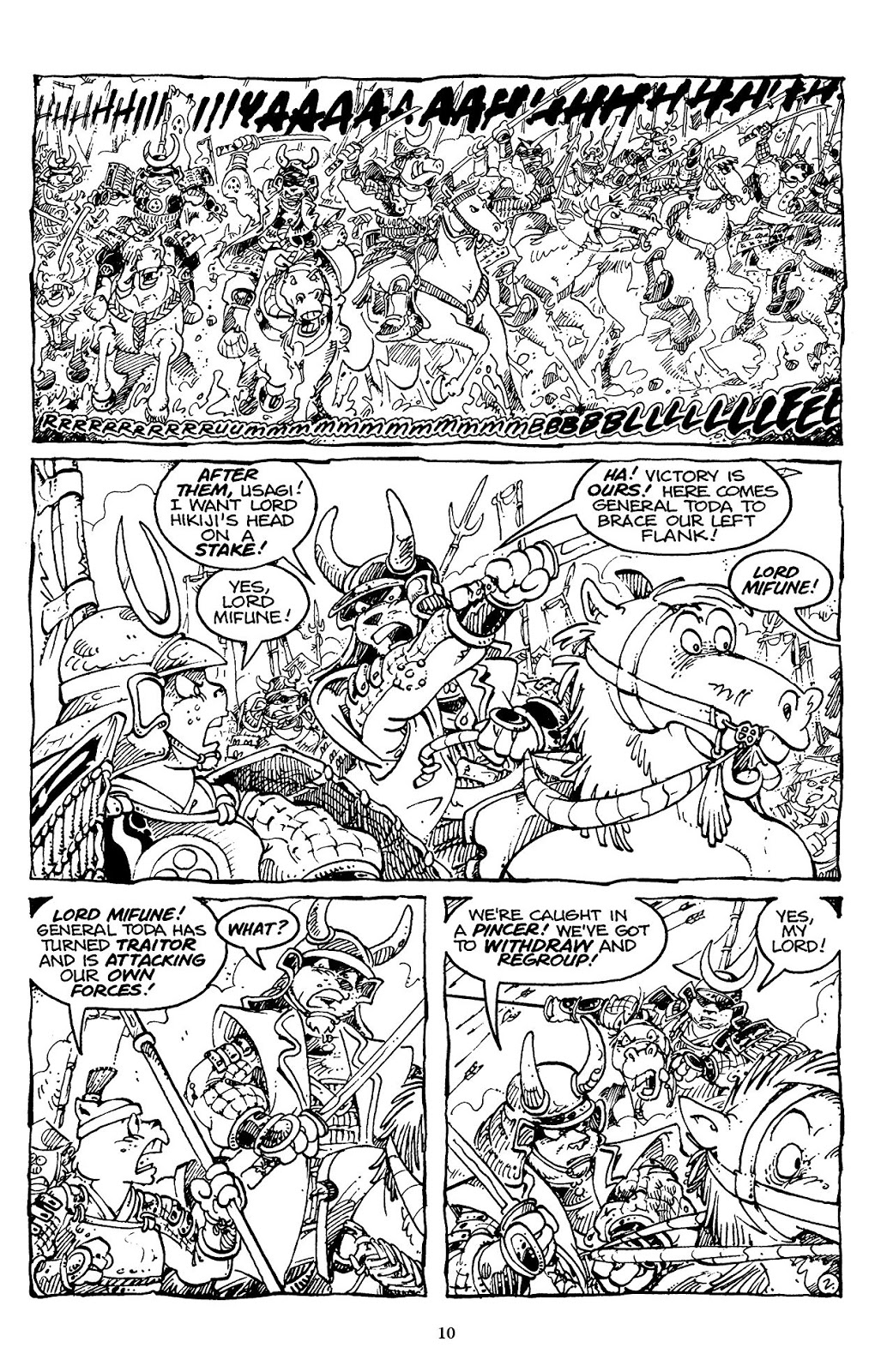 The plot mainly follows Miyamoto Usagi, a samurai living in 17th century Japan (during the Edo Period) who has lost his master and now wanders the road alone. He has a code of ethics, and he seeks to help those in need and often finds himself embroiled in interesting situations. What I find most impressive about this series, it features "funny animals" but they are some of the most human and evocative comics I have ever read. Sakai is masterful at creating tense situations and full characterizations in very short order. His artwork is impressively detailed and smooth, and the economy of his storytelling is superlative. He can portray small scenes of poignancy equally as well as large scale battles. Just check out this preview:
