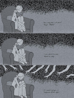 The ways that she depicts her various mental states, the gnawing of hunger in her belly, her disassociation from her body and herself, and the way that she saw herself in the mirror are all marvels of innovative comics storytelling. Her art chops are impressive, and they go very far in expressing the depths of her feelings and misery. And although the book ends on a positive, sweet note, Green does not pretend that the struggle is ever really over and provides no pat ending. She treats her condition with the seriousness and gravity it requires, and this work seems uniquely geared to shed light on a hidden, often shameful situation that affects many people's lives. The world is better for having this book in it.